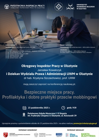 Konferencja naukowa "Bezpieczne miejsce pracy. Profilaktyka i dobre praktyki przeciw mobbingowi"- 23 października 2025 r.